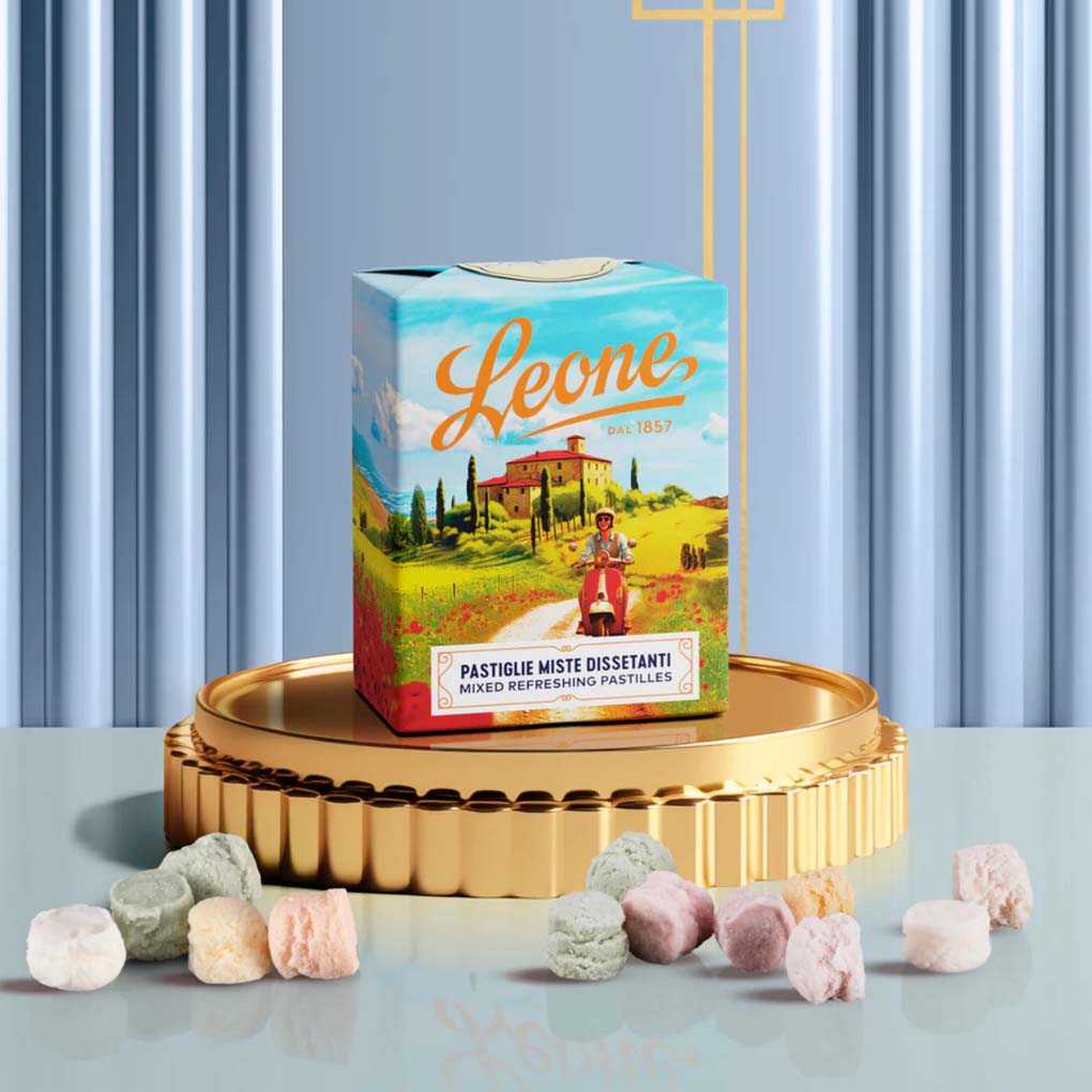 Sugar. Thickening agents: Arabic gum, tragacanth. Humectant: glycerin. Citrus fruits essential oils, fruit juices, natural and artificial flavours. Acidifier: tartaric acid. Colouring agents: curcumin, anthocyanins, FD&C Yellow 5, FD&C Red 40, FD&C Blue 1. May contain milk, tree nuts (hazelnut, almond, pistachio), soy.